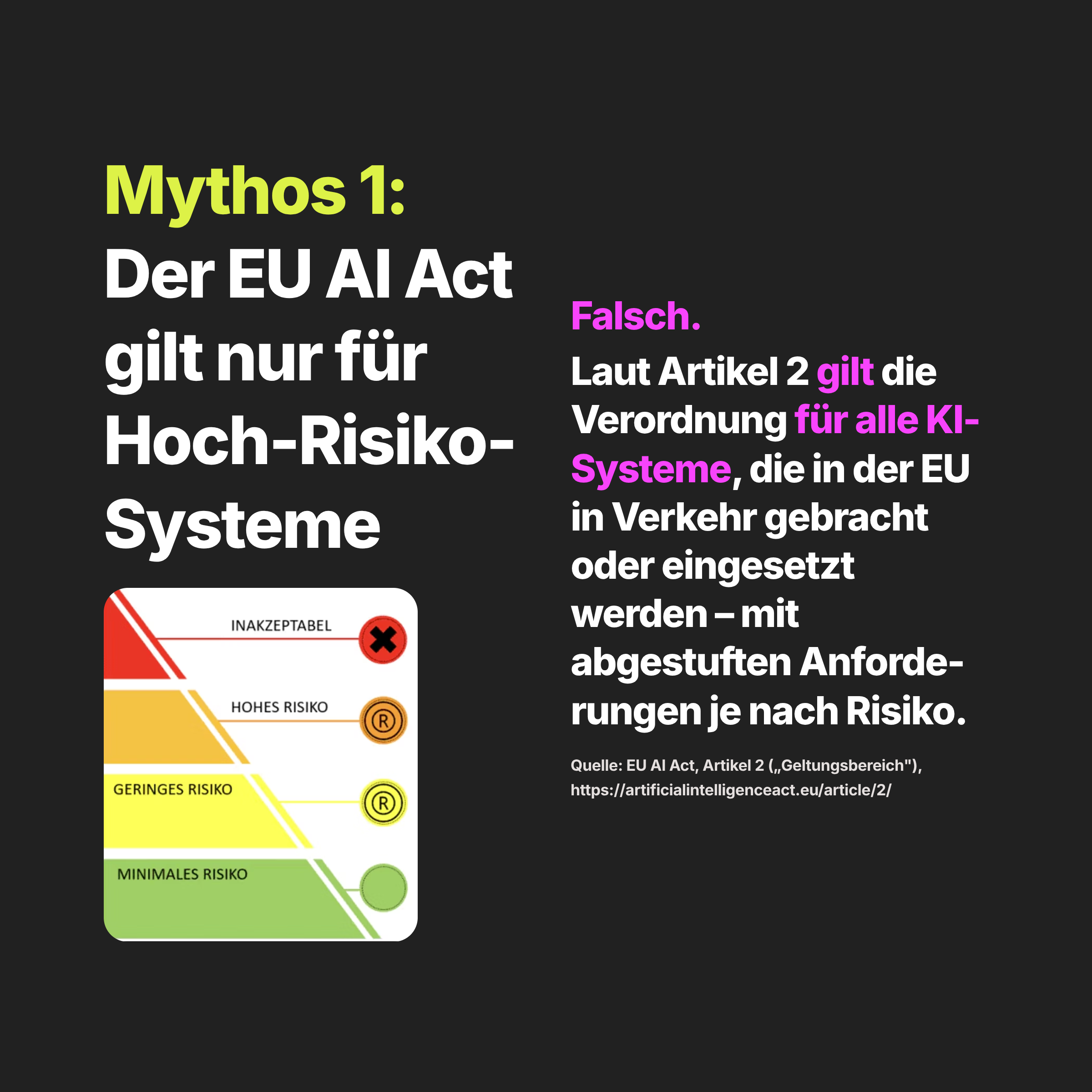 Mythos 1: Der EU AI Act gilt nur für Hochrisiko-Systeme.
