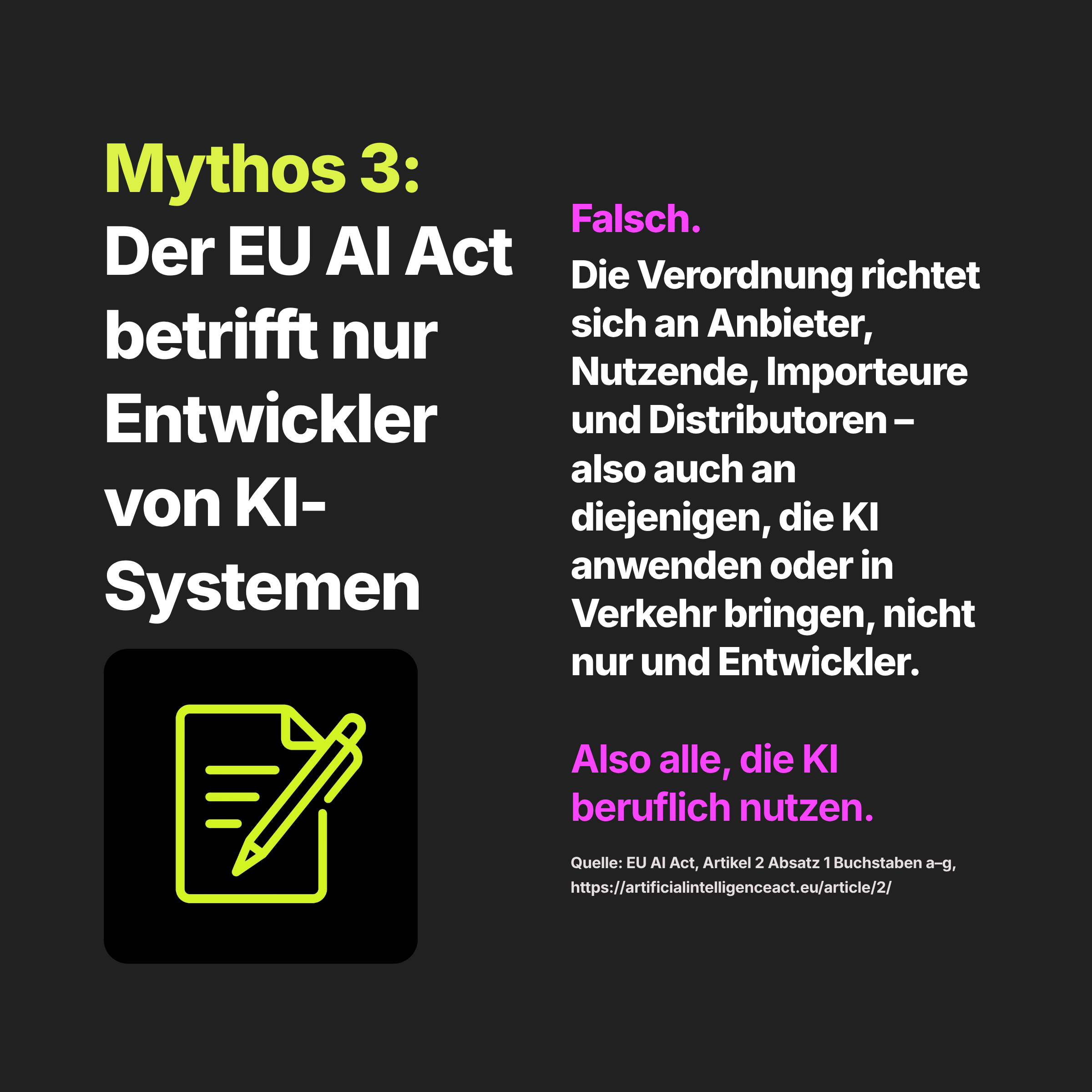 Mythos 3: Der EU AI Act betrifft nur Entwicklerinnen und Entwickler von KI-Systemen.