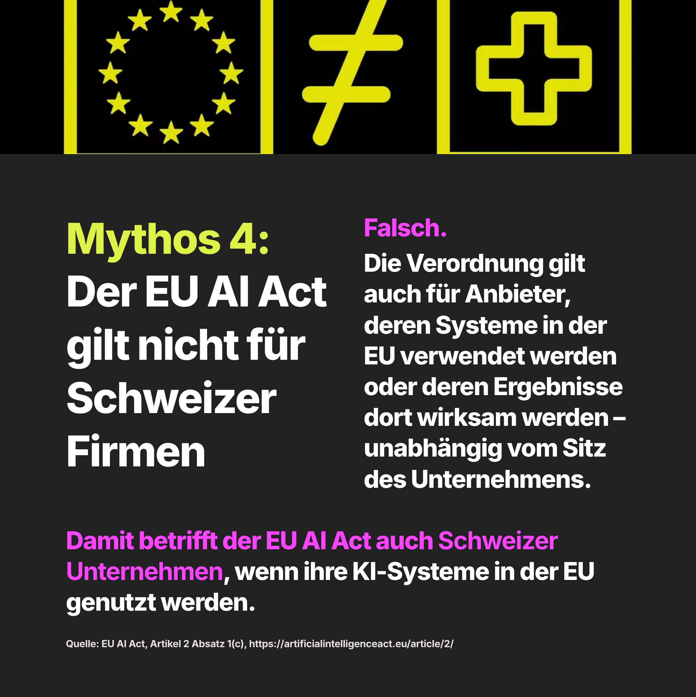 Mythos 4: Der EU AI Act gilt nicht für Schweizer Unternehmen.