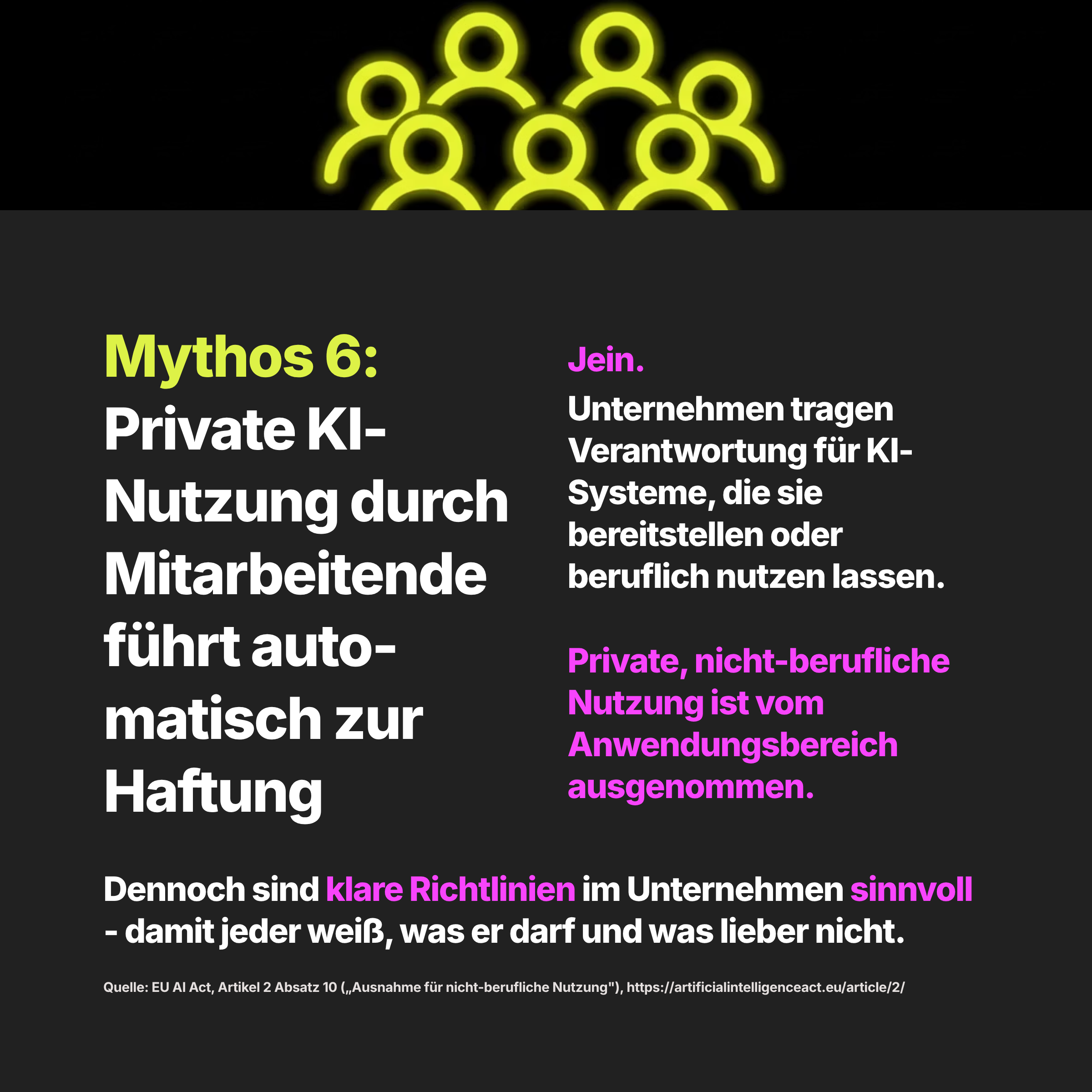 Mythos 6: Private KI-Nutzung durch Mitarbeitende führt automatisch zu Haftung.