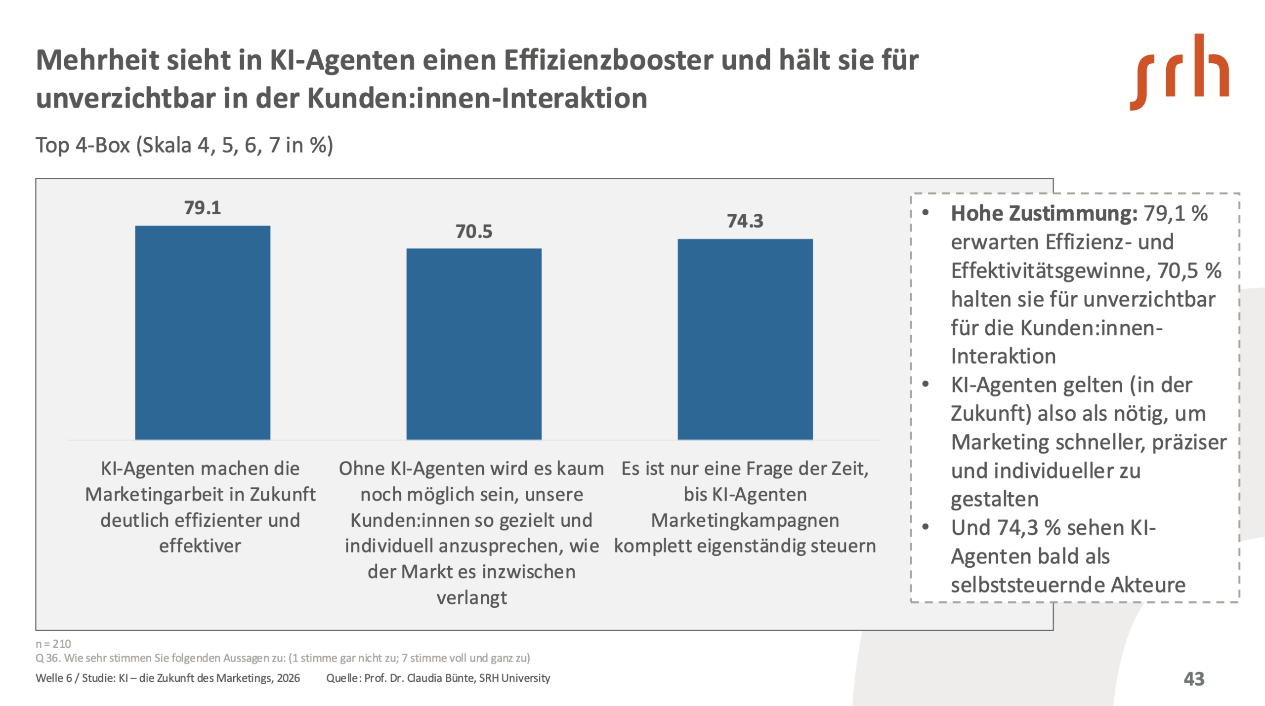 „ChatGPT können heißt noch lange nicht: KI können.“ Sagt Prof. Dr. Claudia Bünte. „Genau diese Verwechslung kostet Unternehmen heute Tempo und Impact – ein spürbarer Teil des Potenzials bleibt ungenutzt. Wer heute noch über „Einführung“ spricht, ist zu spät – entscheidend ist, wie gut KI genutzt wird, nicht ob. Mit KI-Agenten steigt der Anspruch dann sprunghaft, weil die Systeme nicht nur helfen, sondern Aufgaben selbstständig planen und ausführen. 2026 muss deshalb in Marketingteams das Jahr der KI-Trainings werden – wer jetzt keine weiteren KI-Skills aufbaut, wird abgehängt.“